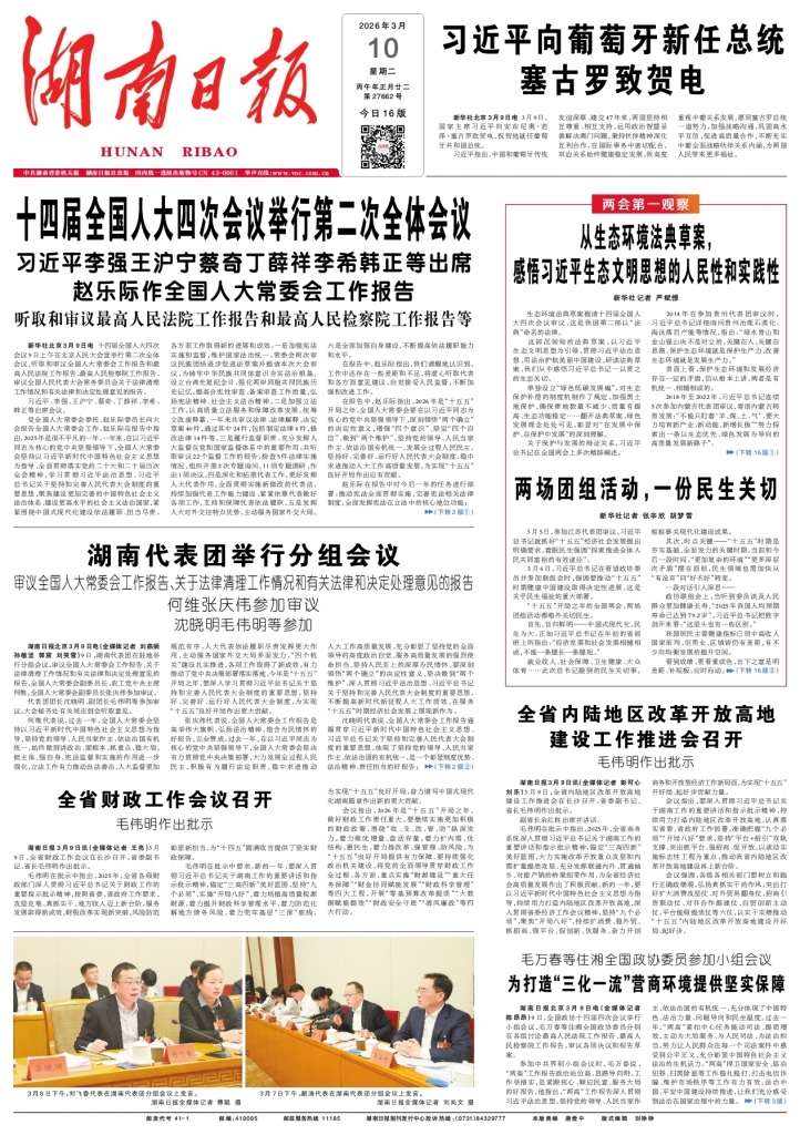 3月9日上午,十四届全国人大四次会议第二次全体会议在人民大会堂举行。