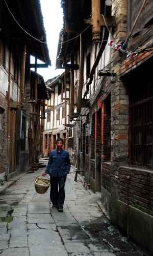 滩头老街两旁是明清时期的木结构建筑,古香古色。据古镇的纸业老人介绍: 过去滩头街上大多数人家以开设染纸作坊为业,纸业繁荣昌盛时期,这条石板老街两旁都是形形色色的年画作坊和染纸作坊, 一座紧挨一座, 楼上楼下、前厅后屋、大小厢房、堂屋走廊及左邻右舍串联相通。