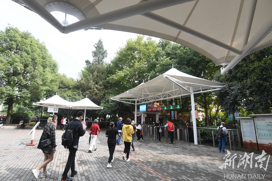9月24日,长沙市橘子洲景区入口处,游客通过入园闸机扫码进入景区。该闸机采用三进三出预约扫码验证系统,具备人脸识别、身份证验证和扫码验证功能,使预约游客可以快速验证入园。另外还设置有无障碍通道,方便特殊人员(老人、残疾人等)通行。入园闸机于本月正式投入使用,对规范景区管理、解决人车分流问题可起到积极的作用。 湖南日报记者田超 通讯员贺婷 摄影报道