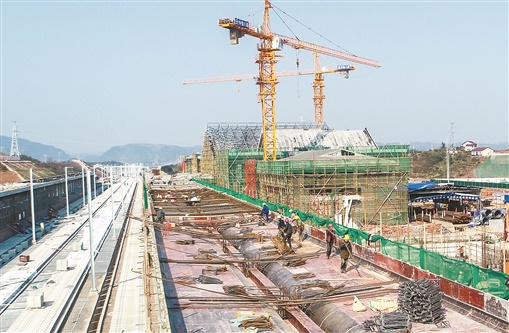 1月1日,麻阳苗族自治县高村镇大力林村,张吉怀高铁麻阳西站建设工地,工人坚守岗位,用辛勤的汗水献礼新年。滕树明 摄