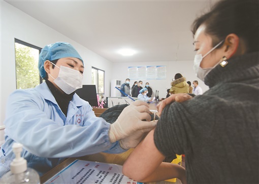 1月6日,嘉禾县珠泉卫生院,医护人员为受种者注射疫苗。当天,该县举行新冠病毒疫苗紧急使用预防接种演练,通过预检分诊、健康筛查、知情告知、疫苗接种、休息留观等环节的演练,全面提高新冠病毒疫苗接种的应对能力。