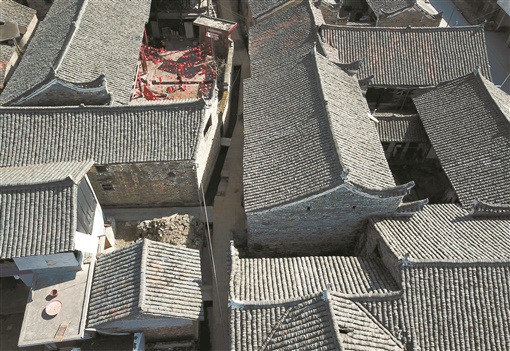 1月12日,俯瞰城步苗族自治县儒林镇清溪古村。清溪古村已有近800年历史,拥有明清古民居110余幢,其中保存完好的四合院落18座。近年,当地不断加大对清溪村古民居的保护、修缮力度,使这座古村落重现光彩。严钦龙 摄
