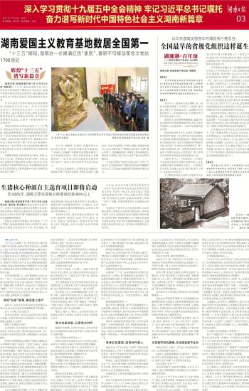 第03版:深入学习贯彻十九届五中全会精神 牢记习近平总书记嘱托 奋力谱写新时代中国特色社会主义湖南新篇章