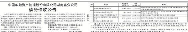中国华融资产管理股份有限公司湖南省分公司 债务催收公告