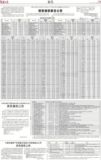 中国华融资产管理股份有限公司湖南省分公司 债务催收公告