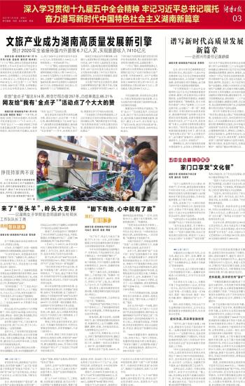 第03版:深入学习贯彻十九届五中全会精神 牢记习近平总书记嘱托 奋力谱写新时代中国特色社会主义湖南新篇章