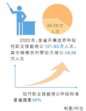 “开展政府补贴性职业技能培训55万人次,其中农村转移就业劳动者培训15万人次”,被列入2020年省政府工作报告12项重点民生实事之一。
