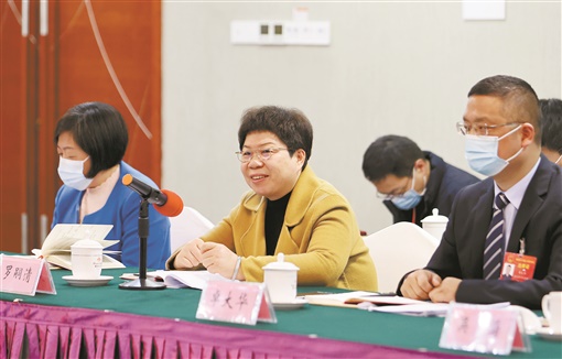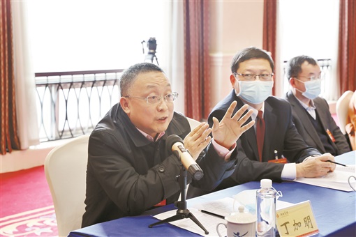 1月26日上午,丁加明委员(左一)在九三、科协、科技、教育等界别的联组讨论时,建议进一步优化人才政策、推动我省高质量发展。湖南日报·新湖南客户端记者 赵持 摄