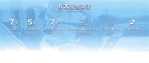 此外,启辰还郑重推出了“6大服务承诺”,进一步为车主的用车生活保驾护航。7天可退换车保障,让车主购车更放心;超长5年免费双保,让车主购车更安心;低至7折保养套餐,让车主用车更省心;救援服务2小时到达,超过2小时免单(启辰T60EV,D60EV客户承诺);会员专属特权,让车主尊享更多福利;还有灾害关怀基金,为车主减轻风险。