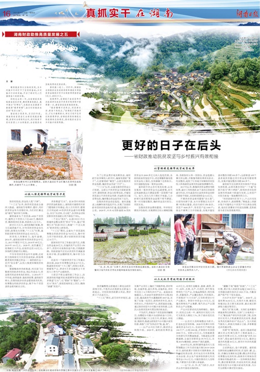 不仅武冈,其他各个贫困县脱贫摘帽后,也都把乡村振兴当成新的奋斗目标。省财政明确三大主攻方向,抓重点、补短板、强弱项,推进全面脱贫与乡村振兴有效衔接,助推“三农”加快迈向“强、富、美”。