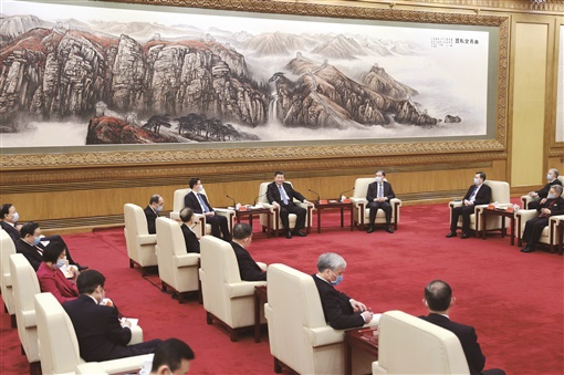 习近平强调,中共十九届五中全会为我国未来5年及15年的发展指明了方向,为全面建设社会主义现代化国家擘画了宏伟蓝图。希望大家充分发挥人才荟萃、智力密集的优势,开展战略性、宏观性研究,为中共中央决策提供更多务实管用的对策建议。要借鉴脱贫攻坚民主监督的好经验、好做法,谋划部署好新的专项民主监督工作。全国工商联要围绕促进非公有制经济健康发展和非公有制经济人士健康成长的主题履行职责、发挥作用,加强政治引领和思想引导。要发挥党外知识分子的专业优势,在做好疫情防控和推动经济社会发展等方面作出新的贡献。