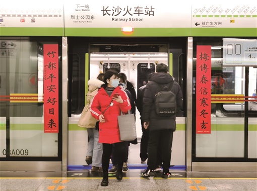 2月1日,地铁3号线长沙火车站站内,安全门旁贴上了春联。农历春节将至,长沙各地年味渐浓,灯笼、春联等装饰映衬出星城年味。 湖南日报·新湖南客户端记者 傅聪 摄