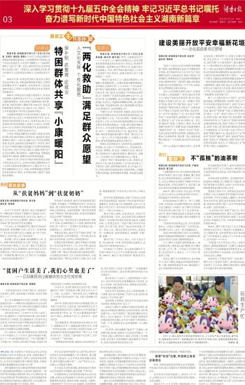 第03版:深入学习贯彻十九届五中全会精神 牢记习近平总书记嘱托 奋力谱写新时代中国特色社会主义湖南新篇章
