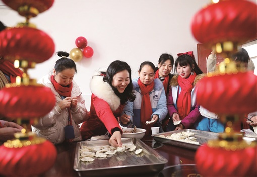 2月5日,衡阳县西渡高新区,就地过年的外省务工人员与县总工会的工作人员一起包饺子、过小年。当天,该县总工会为就地过年的外来务工人员开展免费技能培训,给予生活上的关爱,送上当地旅游年卡等“暖心大礼包”,让他们留得安心,过得舒心。