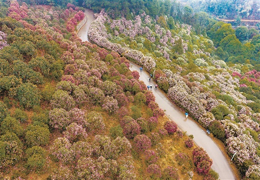 2月9日,怀化市鹤城区中坡国家森林公园,漫山茶花盛开,蔚为壮观,吸引了众多市民前来赏花、游玩。田文国 摄