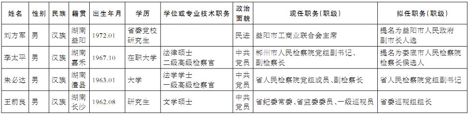 为了加强对干部选拔工作的监督,提高识别和任用干部的准确程度,现对省委常委会会议研究决定的下列拟任人选(候选人人选、提名人选)进行任前公示: