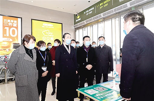 在青园街道电力生鲜市场,菜品丰富,摆放整齐,进入菜场买菜的市民均需要戴口罩、量体温。上午9时,正是大润发超市天心店市民买菜的高峰期,果蔬区称重处排起了队。“你们间隔远一点,别交头接耳,称完赶紧走。”店长潘红霞看人多了起来,赶紧维持秩序,“今年我们春节期间依旧不歇业,做好常态化防控的同时,备齐丰盛的物品满足周边十几万老百姓的日常所需。”潘红霞说。