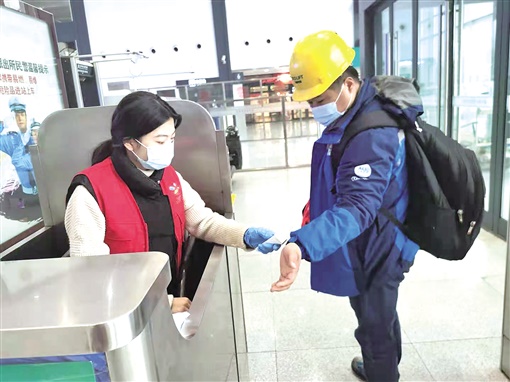 在天心区各大地铁口、城铁站门口,都有一群“红马甲”的身影,他们对出入人员进行体温测量、引导购票、免费发放口罩等,一抹抹“志愿红”在这个春节再次“点亮”疫情防控的前沿阵地。