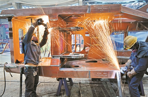 2月9日,长沙县中联重科泉塘工业园,工人忙着对起重机转台结构件进行修磨,现场一派热火朝天的生产景象。为鼓励员工春节期间留长留岗,该公司通过发放春节红包补贴、免费供应除夕中午饭、安排省内景区观光游等暖心活动,确保企业安全生产,外来务工人员就地安心暖心舒心过年。