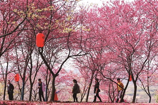 ▲2月14日,桂阳县樱花园,近2000亩樱花迎春绽放,吸引游客纷至沓来。该园种植樱花3万余株,有广州樱、香水樱等10余个品种。目前,正值盛花期,满园花香,馥郁芬芳。预计花期将持续至3月底。
