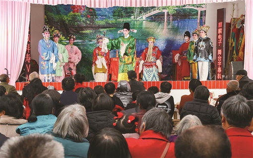 2月13日晚,临武县南强镇李家村,县舜邑小调艺术团为村民表演临武小调《双拜寿》。陈卫平 摄