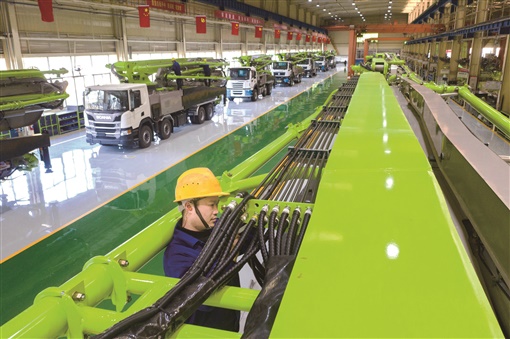 2月17日,中联重科混凝土泵送机械分公司总装车间,工人在生产线上作业。当天,中联重科发出了价值1亿元的混凝土泵车。湖南日报·新湖南客户端记者 唐俊 通讯员 彭凯剑 摄影报道