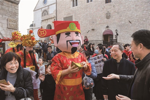 2月15日,湘江新区华谊兄弟(长沙)电影小镇,工作人员扮演“财神爷”与游客互动。 湖南日报·新湖南客户端记者 辜鹏博 王晗 摄影报道 |