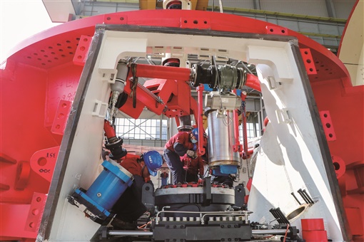 2月17日,铁建重工长沙园区掘进机生产车间,工人组装盾构机刀盘。春节期间,该厂区工作人员加班加点,保证这台将用于安徽芜湖过江隧道建设的超大直径盾构机的生产进度。 贺梦燕 摄 |