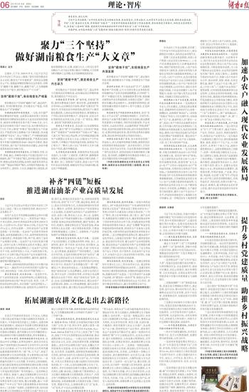 聚力“三个坚持”做好湖南粮食生产“大文章”