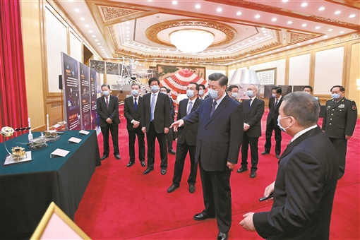 习近平在会见探月工程嫦娥五号任务参研参试人员代表并参观月球样品和探月工程成果展览时强调
