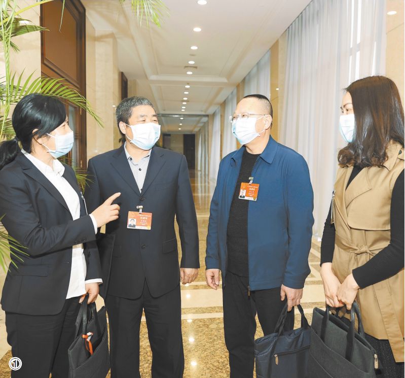 图① 胡美娥、吴继发、刘小平、秦爱玲(从左至右)4位邵阳籍代表在楼道巧遇,更巧的是两位来自农业领域,两位来自工业企业,如何加快邵阳高质量发展成为大家讨论的焦点。大家认为,邵阳既是基础雄厚的农业大市,也是蓬勃发展的工业新城,要在“十四五”开局之年迈好第一步,争当全省发展“优等生”。
