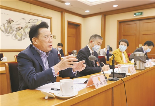 3月10日,梁稳根代表(左一)在分组审议时,就进一步优化政府服务,促进企业健康发展建言。