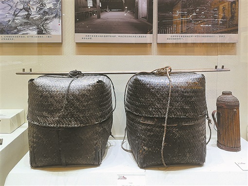 通道转兵纪念馆展出的一担皮箩。 吴庆革 摄