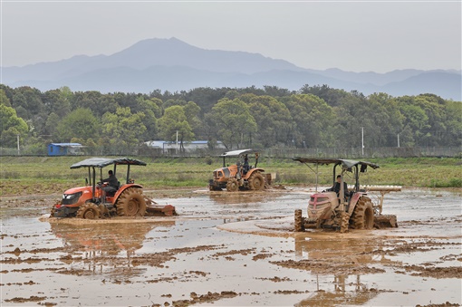 3月23日,浏阳市龙伏镇,数台农业机械在田间进行翻耕和平整作业。今年,该镇牢牢守住了耕地保护的红线,打造万亩早稻示范基地,将6个村的农田进行统一流转,实现耕田、灌溉、收割全程机械化作业,提高生产效率和效益,增强农民和种粮大户的积极性。