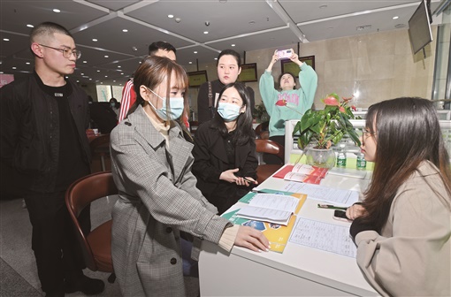 3月24日,长沙市开福区就业服务中心,求职者在用人单位招聘展位前应聘。当天,该区举行2021年春季退役军人暨随军随调家属专场招聘会,60余家企业提供了近千个岗位,涵盖科技、机械、安保等领域。现场还开办了就业需求咨询会和公务员考试技能培训会,通过招聘会及系列活动,为退役军人和军属搭建良好的就业平台。