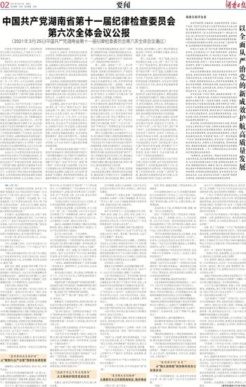 中国共产党湖南省第十一届纪律检查委员会第六次全体会议公报