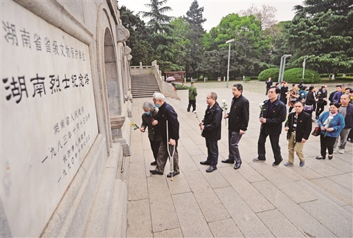 3月30日,湖南烈士公园,市民向湖南烈士纪念塔献花。清明将至,省会各界自发前往各烈士陵园和纪念碑瞻仰先烈,向革命先烈敬献鲜花,表达对先烈的缅怀之情。