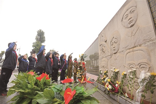 ▲4月3日,湖南革命陵园,长郡天心实验学校的少先队员来到烈士纪念墙前,向烈士敬献鲜花、行队礼。当天,许多市民自发来到这里,开展纪念活动,缅怀三湘英烈,传承烈士美德。