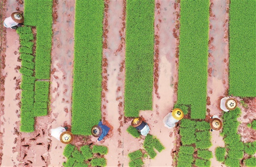 4月14日,祁东县白鹤街道百家村,村民在秧田里起秧盘。当前,该县的早稻生产进入插秧阶段,村民抢抓农时起秧、插秧,田间地头一派忙碌的生产景象。曹正平 付姣龙 摄影报道