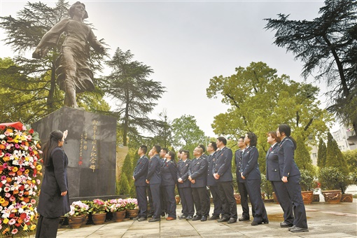4月16日,向警予同志纪念碑前,党员干部在聆听红色故事。当天,怀化市税务局第一税务分局组织党员干部来到溆浦县向警予同志纪念馆开展党史学习教育。杨芝干 摄