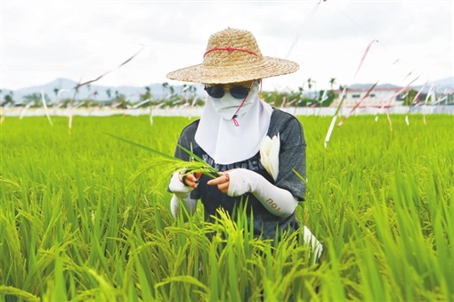 4月,海南省三亚市已进入夏季,气温高达30摄氏度。正值水稻南繁育种最繁忙的时节,海南各南繁育种基地,农业科研人员冒着高温,忙着育种。
