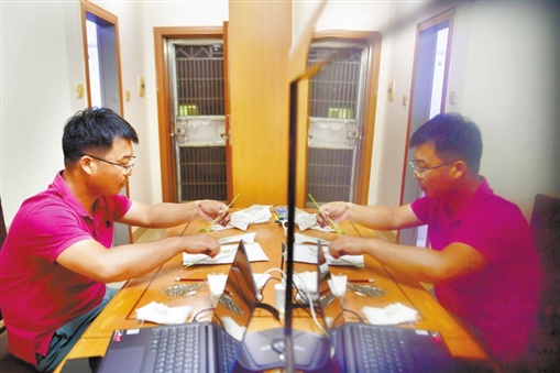 4月6日晚,湖南杂交水稻研究中心三亚南繁试验基地,水稻栽培专家李建武博士在宿舍里整理小品种种子。 |