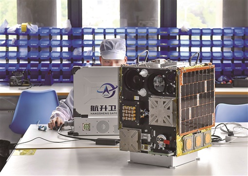 上图:4月27日11时20分,包括“中安国通一号”卫星在内的九颗卫星在太原卫星发射中心搭载长征六号运载火箭成功发射入轨。“中安国通一号”卫星由湖南航升卫星科技有限公司和哈工大机器人集团岳阳研究院联合研制,是国内首颗具有实时响应、交互操作、智能管理能力的智能遥感卫星,质量为37千克。