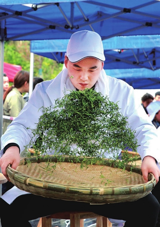 4月20日,吉首市马颈坳镇隘口村,制茶能手进行制茶技艺比拼,角逐“茶王”称号。郑春艳 摄 |