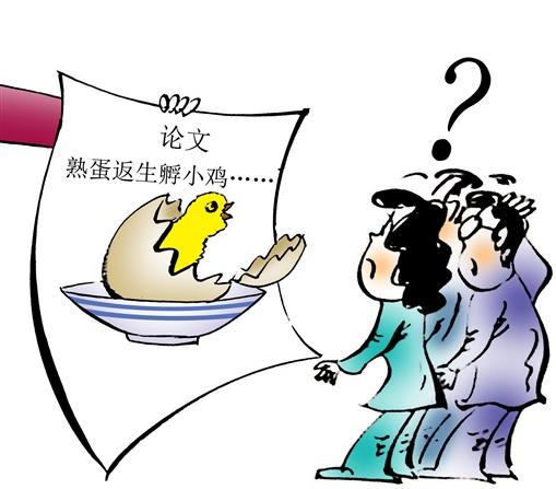 “利用超心理意识能量方法,可以使熟鸡蛋反生并成功孵化出小鸡。”显而易见,这篇论文严重违背了生活常识和自然规律。要知道,科学研究须以严密的逻辑和科学的理论作为基础,而不是披着科学的外衣胡说八道。如此驰于空想,科研失败是小事,还会拉低学生的科学素养,败坏科研风气,是赤裸裸的反智行为。