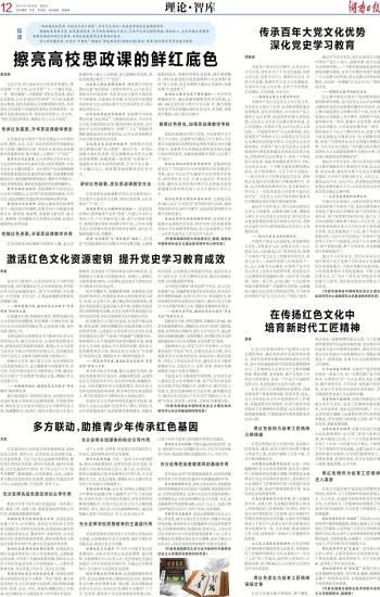 中国共产党在百年历程中,以马克思主义为引领,依托中华五千年文化底蕴,坚持文化自觉、注重文化自立、展现文化自信、实现文化自强。梳理百年大党文化发展脉络、传承百年大党文化优势,有利于学史明理、学史增信、学史崇德、学史力行。