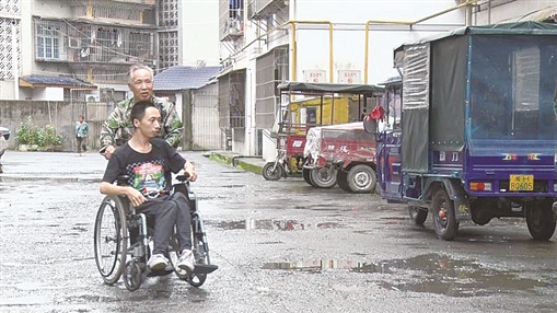 “十六七岁以前,爸爸去哪里,就背我到哪里。后来,爸爸年纪大了,背不动我了,就攒钱买了轮椅推我。”儿子黄新月一字一句地说。黄新月的残疾并不是天生的,而是在出生一个多月时,他生了一场大病,错过了最佳就医时间,后来虽然抢回一条命,却因大脑缺氧导致脑瘫,手脚不听使唤,生活不能自理。黄新月的母亲因不堪重负,选择离开,留下父子俩相依为伴。