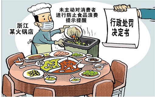 近日,由于违反《反食品浪费法》,未主动对消费者进行防止食品浪费提示提醒,浙江瑞安一家火锅店接到了行政处罚决定书。