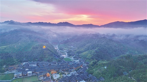山中多雨。上午9时多,皇都侗文化村迎来一阵小雨。不一会儿,景区雨散雾来,云雾绕侗乡的美景引得游客驻足拍照。“我们就以普修桥为背景,跳一支舞吧……”赵丽连忙掏出手机,用短视频记录下与闺蜜们的欢乐瞬间。