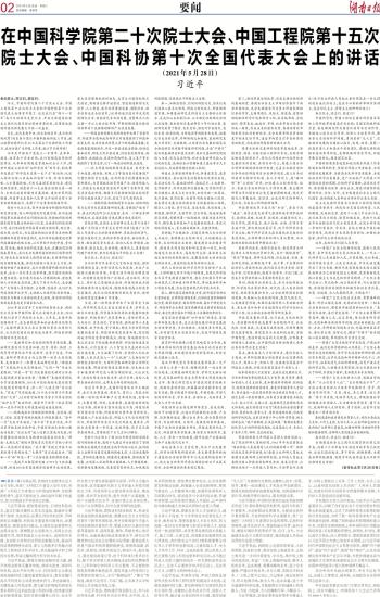 在中国科学院第二十次院士大会、中国工程院第十五次院士大会、中国科协第十次全国代表大会上的讲话